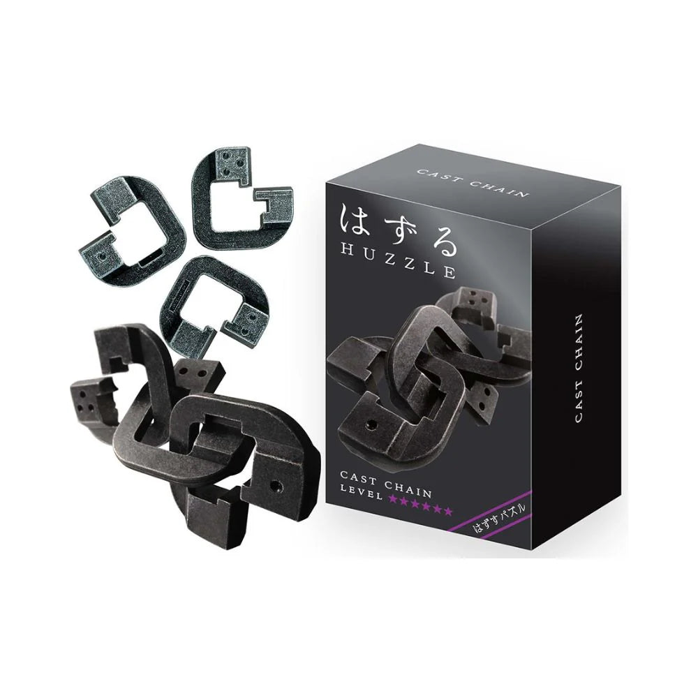 The puzzle is unique in that it can be re-assembled in 3 different ways. Pieces are distinguished by either one, two or three dots on the end. Reassemble so that dot number one is in the middle, then so that the piece with two dots is in the middle, and finally the piece with three dots is in the middle.