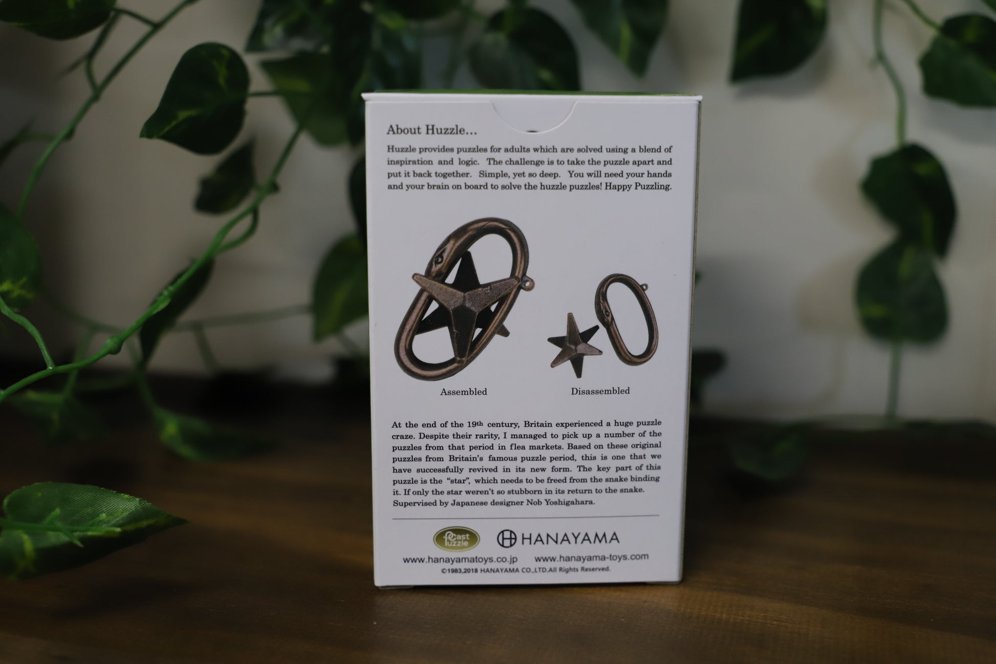 The key part of this puzzle is the 'star,' which needs to be freed from the snake binding it. If only the star wasn't so stubborn in its return to the snake. Taking it apart is only half the fun - can you assemble it again afterwards?