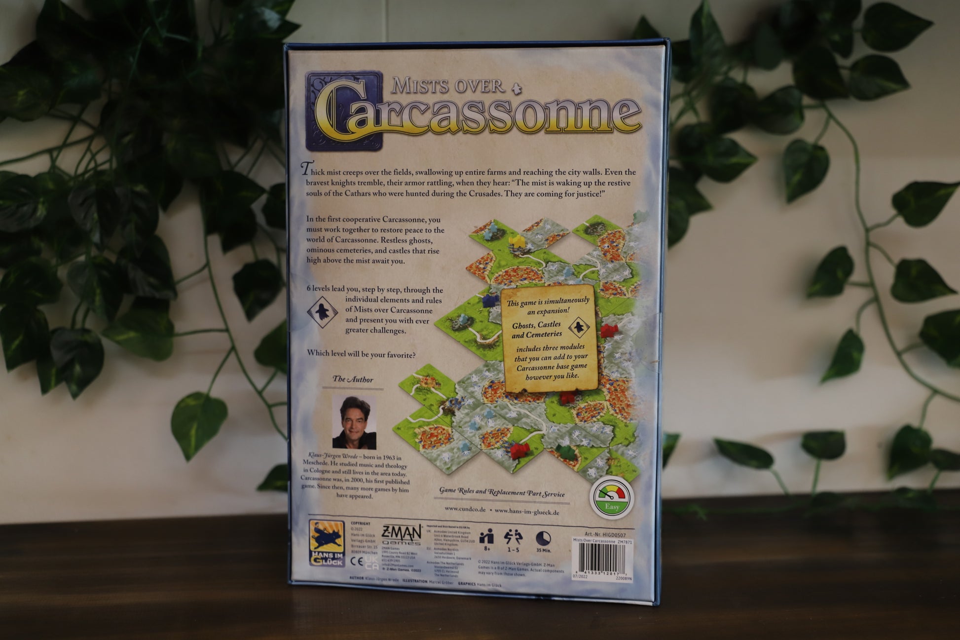 Mists over Carcassonne is a co-operative version of the well-known tile-laying game Carcassonne. Working together, you place tiles and score points while trying to stop the spread of ghosts, contain haunted ground in cemeteries, and use haunted castles to your advantage. If too many ghosts are loose on the ground or you've collected too few points when the tiles run out, you lose the game. If you do manage to survive three days, you can adjust the difficulty level of the game to increase the challenge.