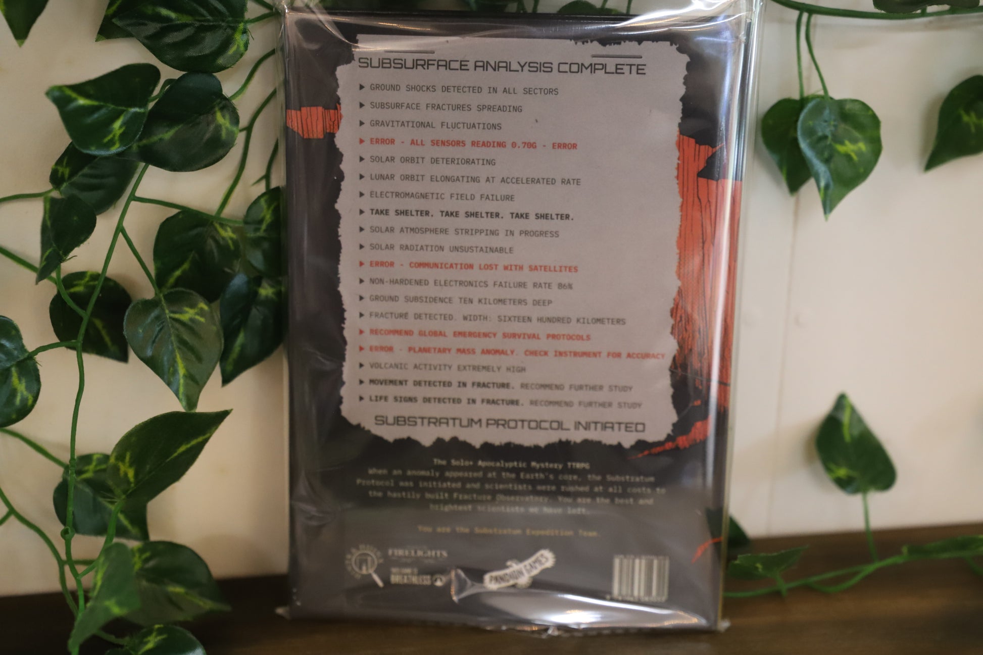 Substratum Protocol is a solo+ survival mystery TTRPG utilizing step-down dice and card draw mechanics, Substratum Protocol is playable as both a solo game or guided by a GM.