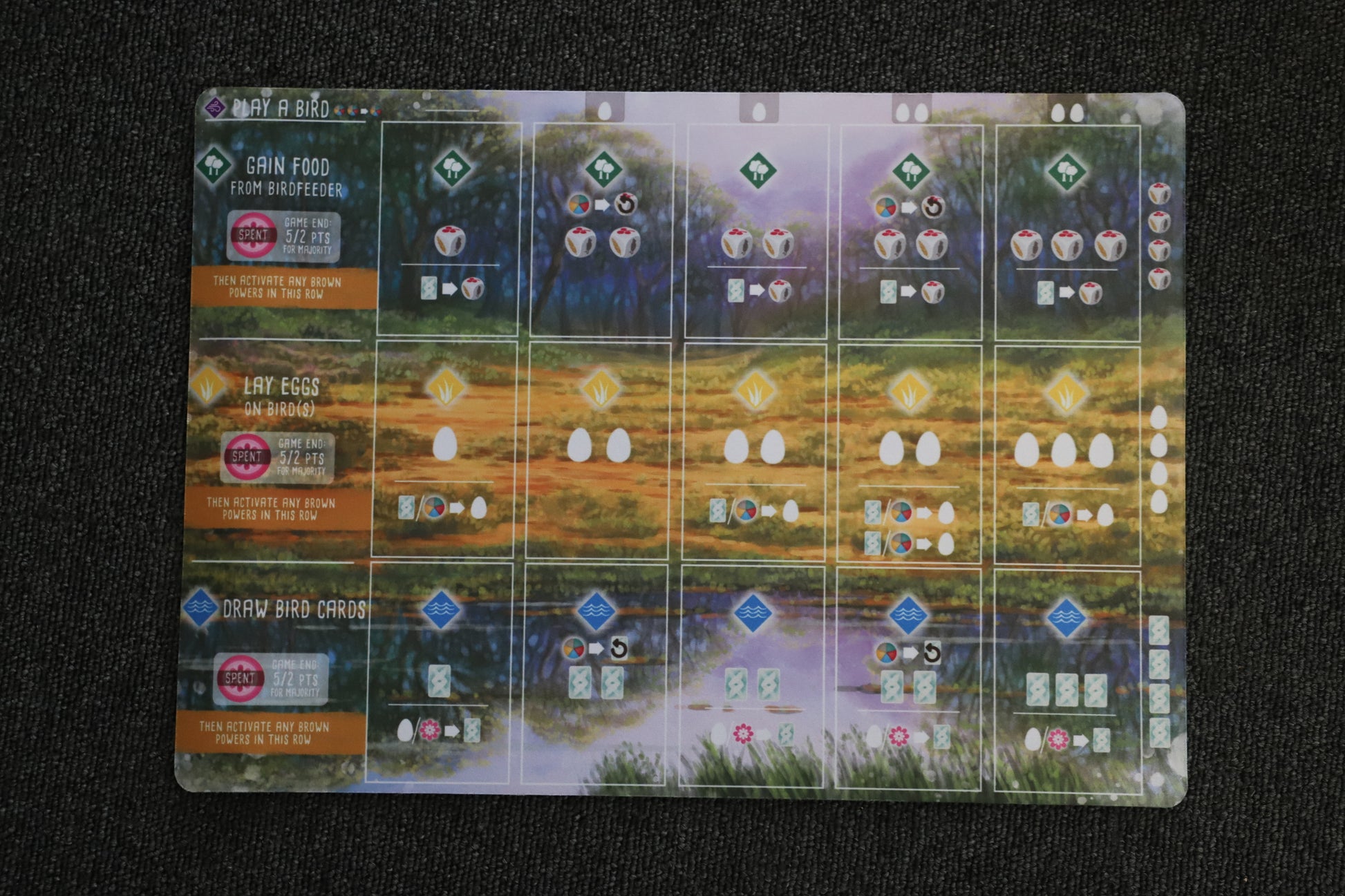 Add to your experience a natural rubber play mat for Wingspan. Why switch to natural rubber for Wingspan? Some players prefer this neoprene-like material because it's easier to remove cards from them.